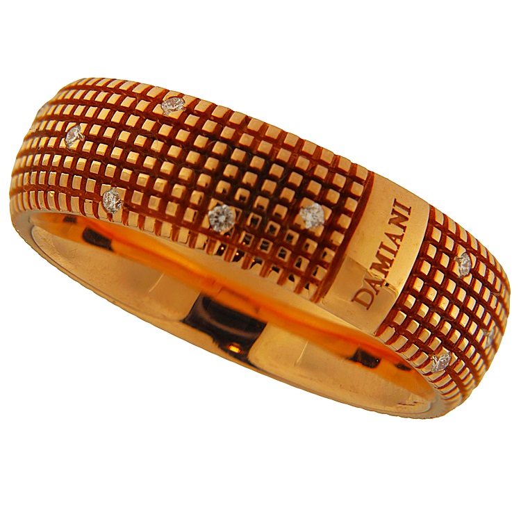 Anello Damiani a fascia quadrettata in oro rosa 18 kt con diamanti taglio a brillante 0,16 ct, colore H-I, purezza VS.