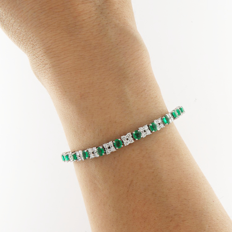 Bracciale vintage in platino con diamanti taglio brillante ct 3,61 e smeraldi