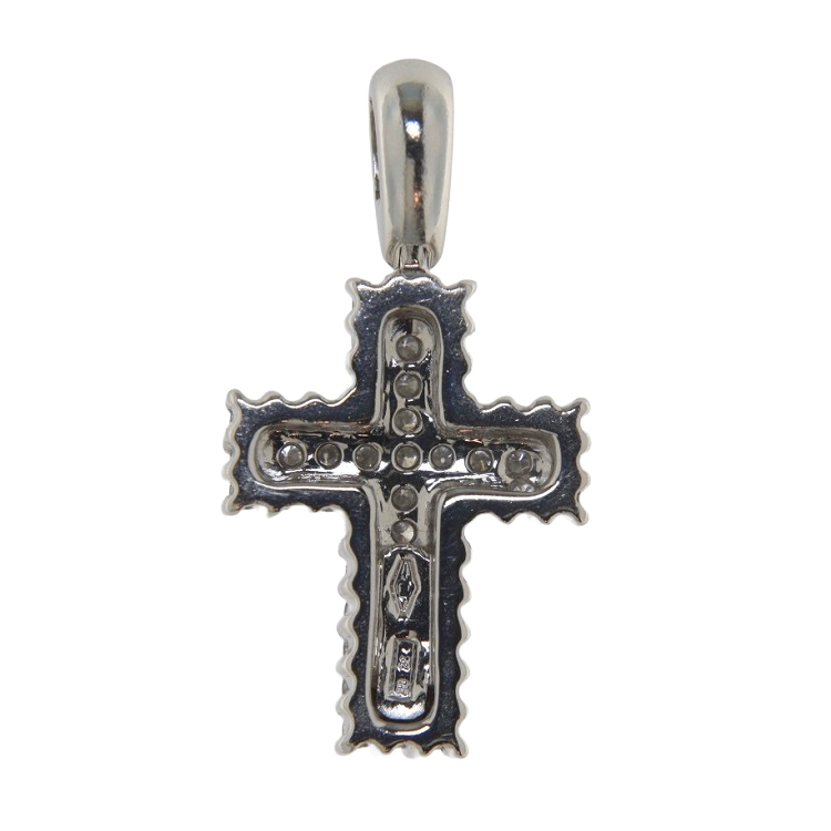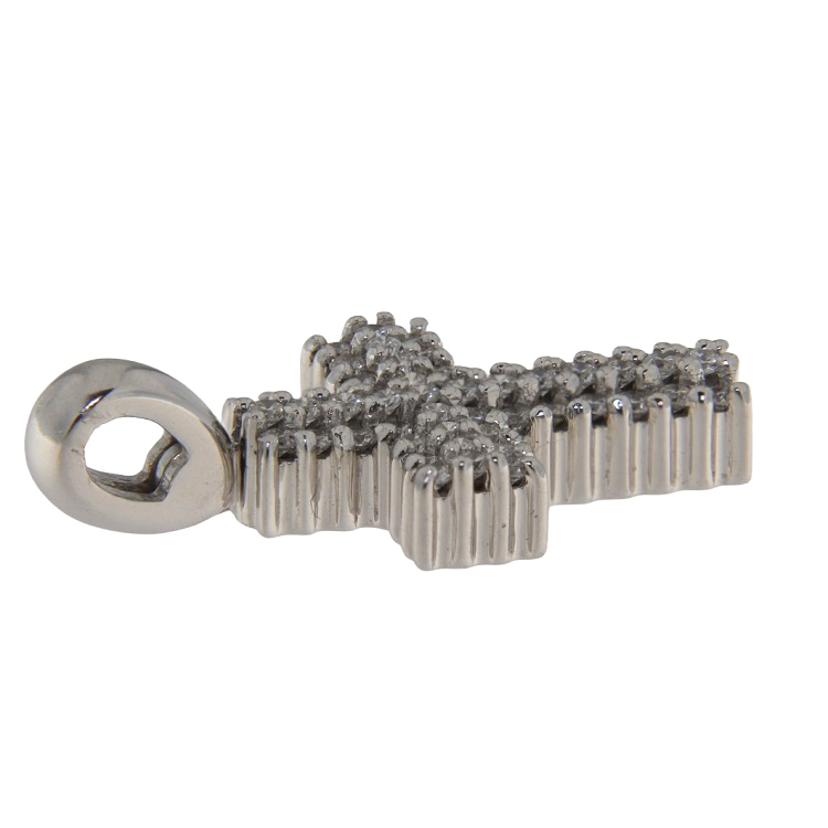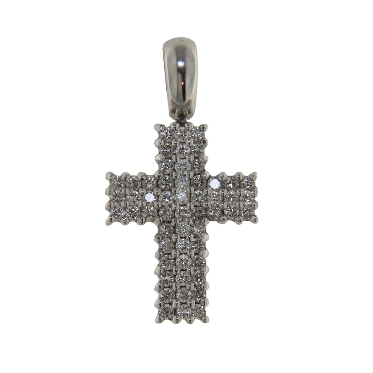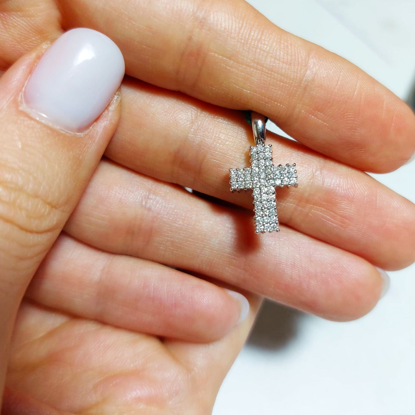 Ciondolo a croce in oro bianco 18 kt ricoperto di diamanti taglio brillante 0,48 ct