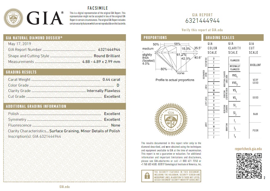 Diamante taglio brillante 0,44 | D | IF | GIA