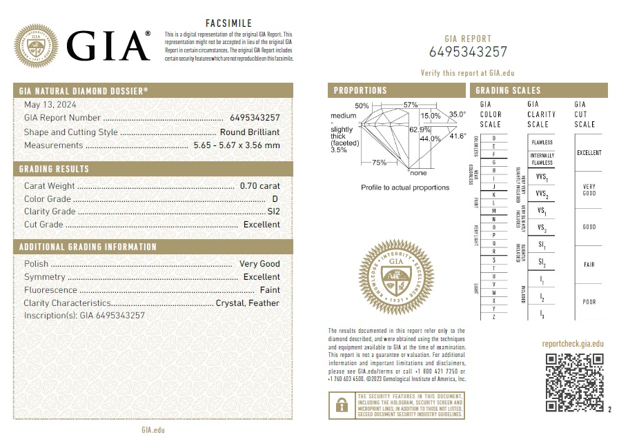 Diamante taglio brillante 0,70 | D | SI2 | GIA
