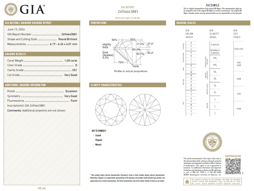 Diamante taglio brillante 1,00 | D | VS1 | GIA
