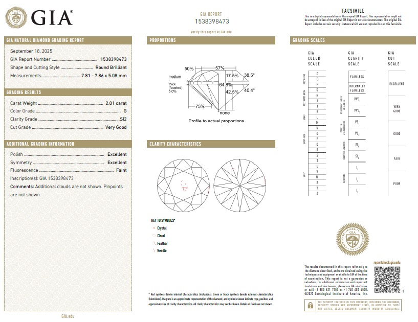 Diamante taglio brillante 2,01 | G | SI2 | GIA