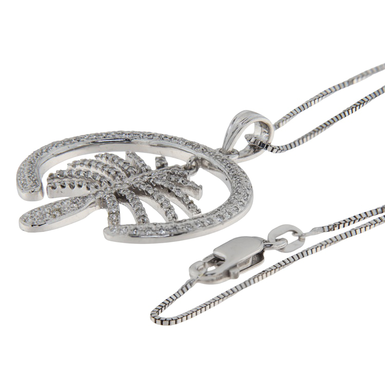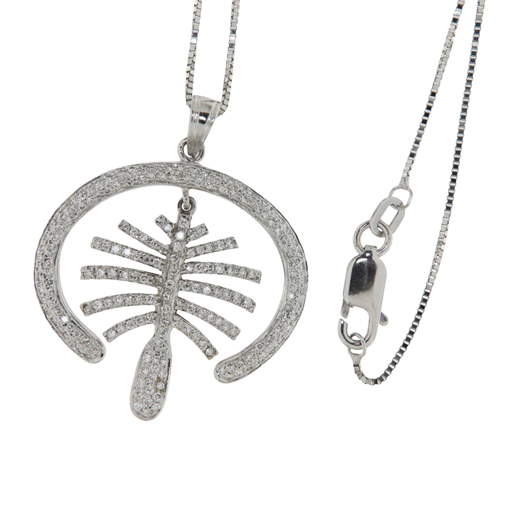 Girocollo vintage con ciondolo in oro bianco 18 kt a forma di Isole Palma di Dubai, con diamanti taglio brillante 0,96 ct