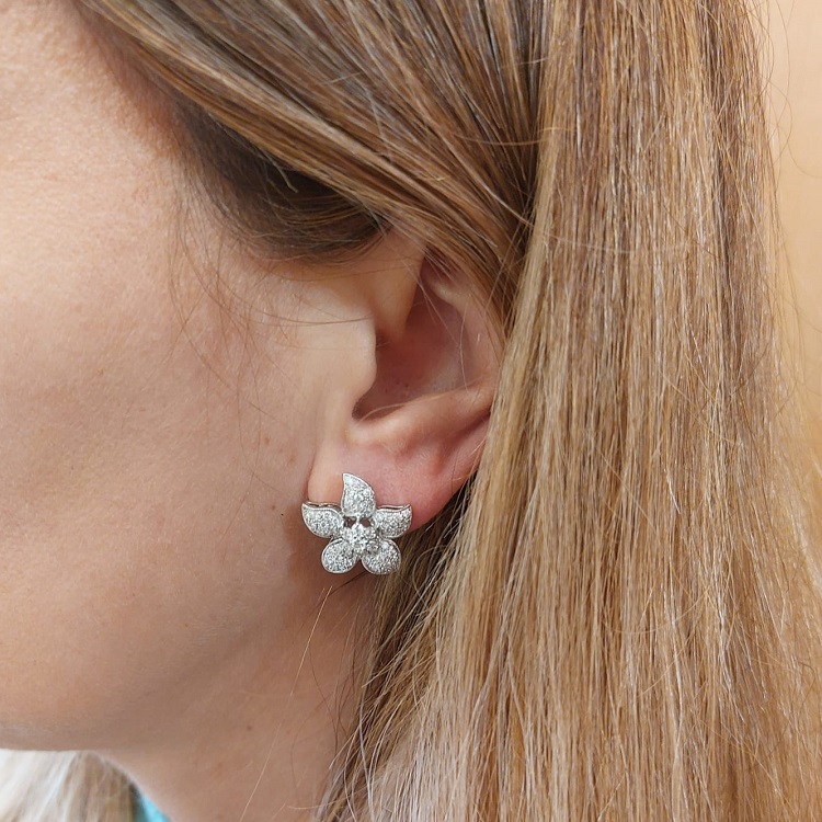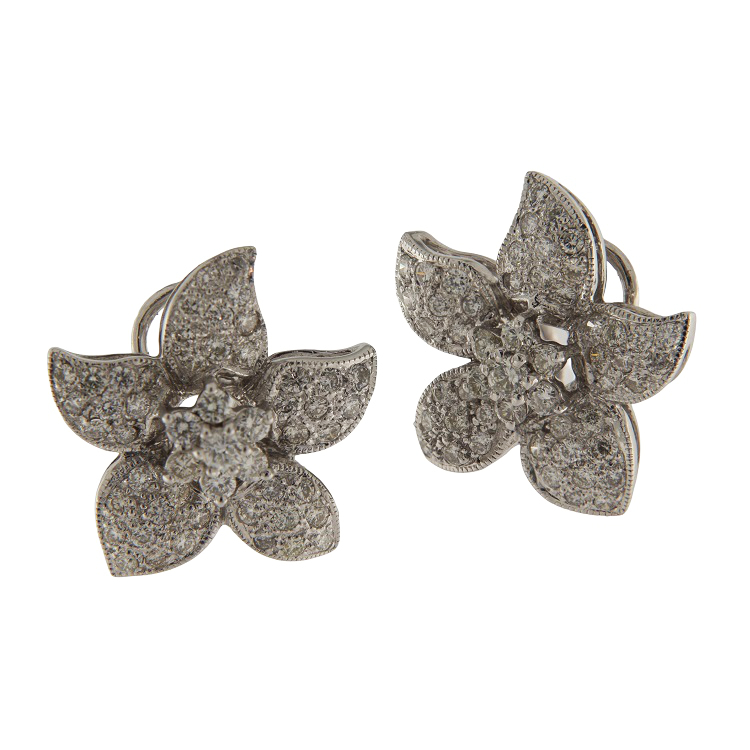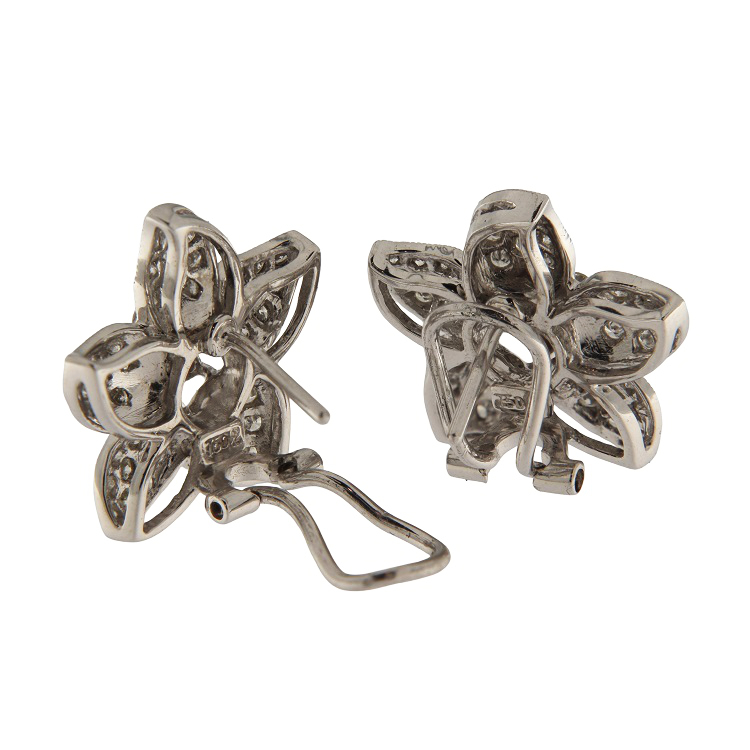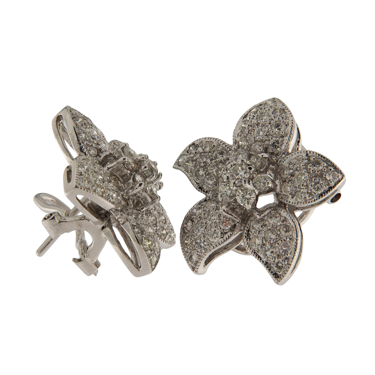 Orecchini vintage a forma di fiore in oro bianco 18 kt con diamanti taglio brillante 1,41 ct