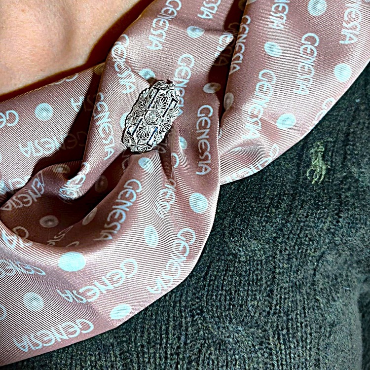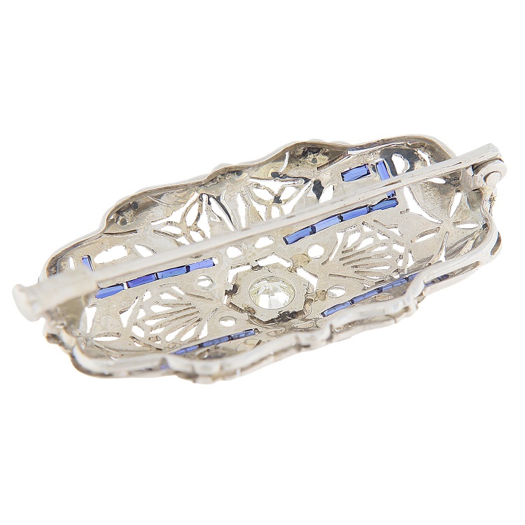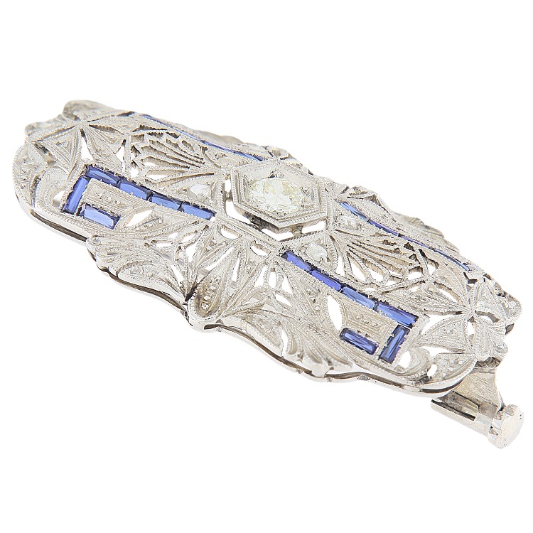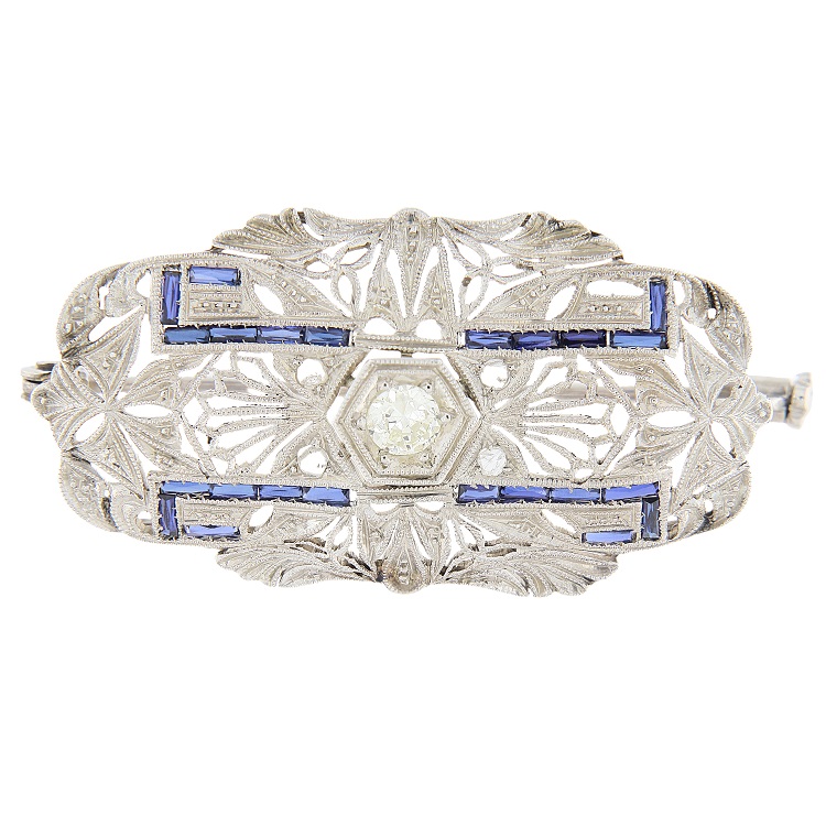 Spilla vintage in oro bianco 18 kt con diamante mezzo taglio e rosette